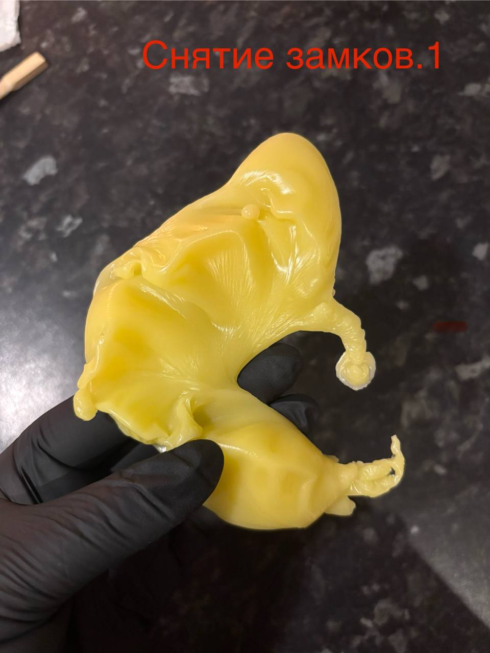 При последней отливке воск пузырился в конце, как мыло, в процессе выливания. Воздух так и застыл в воске. Не знаю, или это важно.