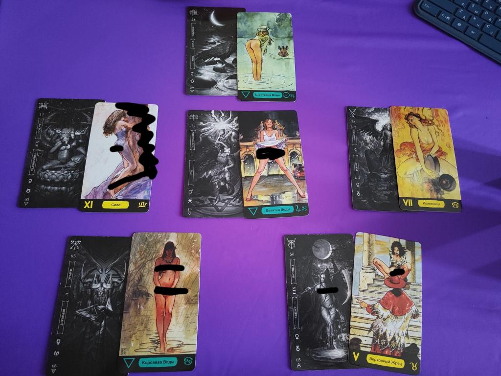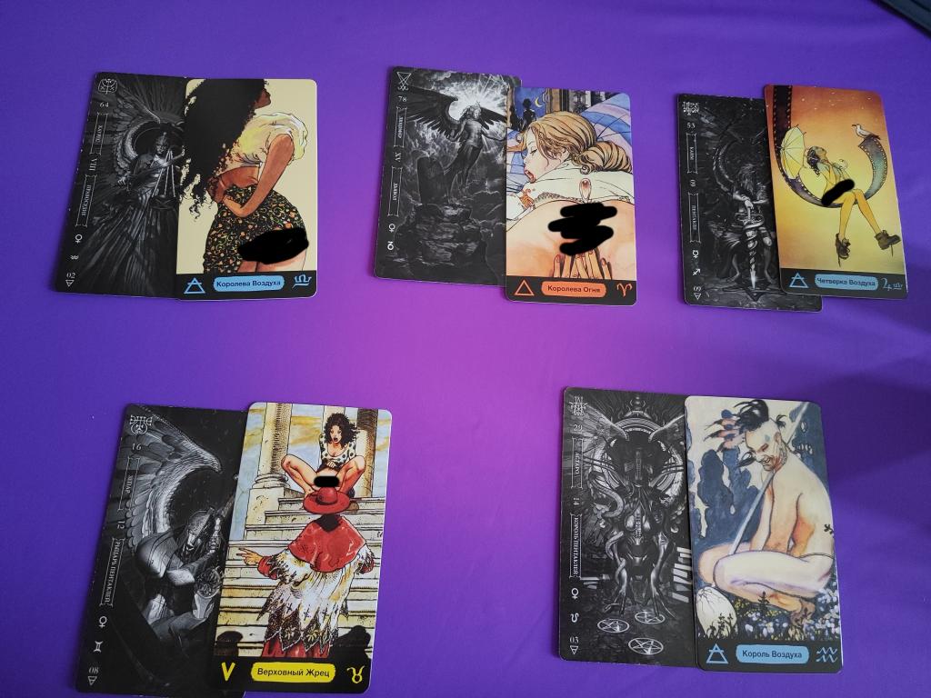 Выпали две верховные жрицы, причем в Гоэтии это Демон Данталион, который славится искусными манипуляциями, многоликостью и двойной игрой. Мне кажется есть ещё женщина, причем вероятно она о вас не знает. И на более серьезный уровень отношений вы не выходите из-за неё. Не то чтобы он её любил или испытывал к ней больше чувств, чем к вам. Нет, ему просто так удобно. Поэтому он будет балансировать между вами. За месяц успеет и характер свой резкий показать и дать слабину, растворяясь в вашей симпатии. Секс возможен, но кто-то останется не удовлетворённым. Гармонию вы можете словить, но она таковой будет только для вас. Вы более эмоционально стабильный человек.