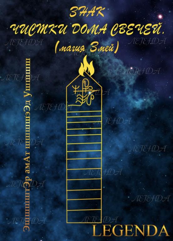 Утром рано до восхода солнца нанести на свечу этот Знак. Когда взойдет солнце, зажгите свечу и стоя в комнате произнесите следующее: