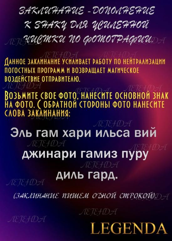 Заклинание- дополнение к знаку усиленной чистки по фотографии