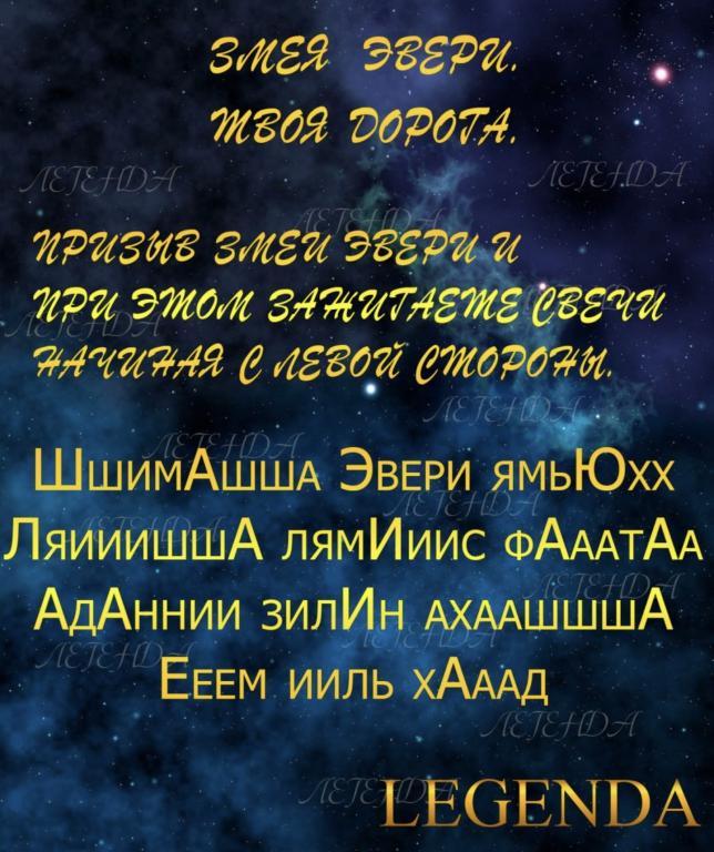 ✨ Начинаете читать призыв Змеи Эвери и при этом зажигаете свечи начиная с левой стороны.