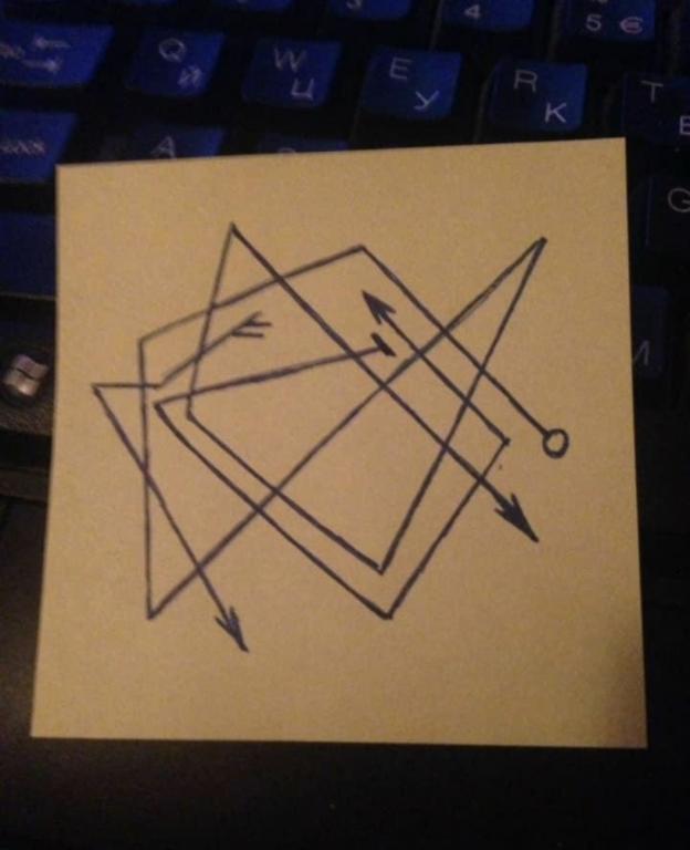 Создана для конкретного человека с конкретной ситуацией.Но вы можете использовать для возврата всего, что у вас украли,будь то деньги или другое имущество.Разбирать и разъяснять здесь нечего;сигила или формула,как вам угодно,пришла в видении.Ее даже оговаривать не нужно,запускается просто на намерении.В нее уже заложена программа наказания вора и возврат вам украденного.Просто рисуем с намерением и активируем как привыкли.