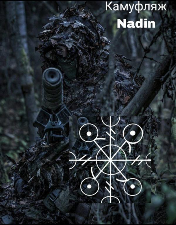 Скрой, укрой с глаз живых убери и сделай невидемым (имя), для врагов его и их оружия.