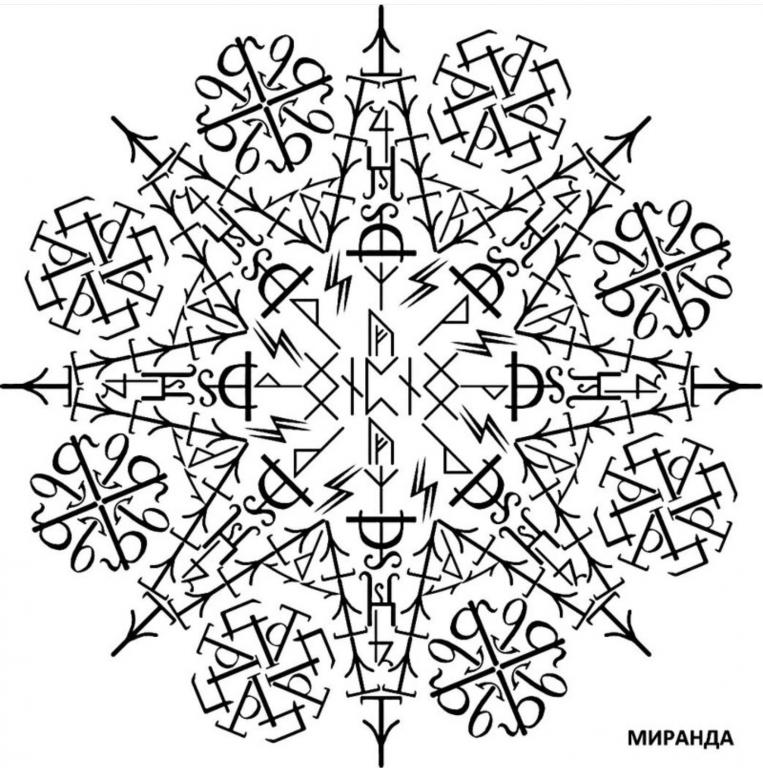 ЧТОБЫ не наворотить каких-нибудь дел с судьбой , то ставим Альгиз, которая будет обозначать весь процесс и которая обеспечит безопасность изменений. ПОМОЩЬ ВС.