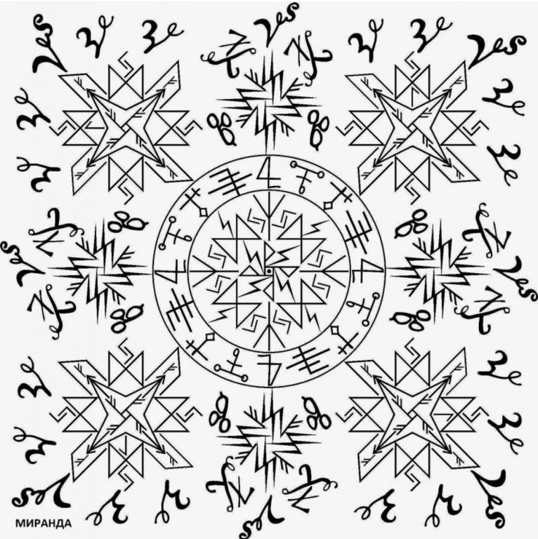 Использованы ряды-Stafrof Alfrunir,Sól-runir-для открытия дороги и путей,устранения негатива.