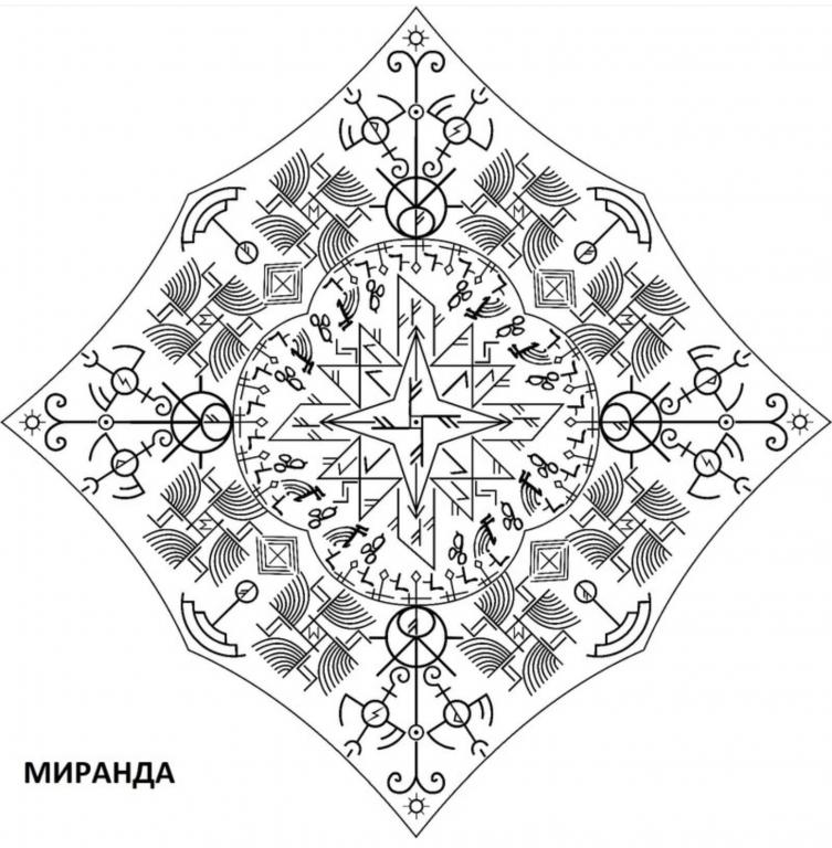 Использованы ряды-Stafrof Alfrunir,Sól-runir-для открытия дороги и путей,устранения негатива.Трехчастные руны-для богатства.