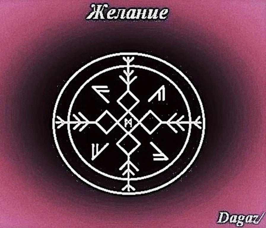 Став на тему исполнения желания, обращение человека к Богам. Все чертить по часовой стрелке начиная от центра Манназ до окончания каждого луча, после этого чертим первый и второй круг. Окончанием будут Ансузы, это и будет обращение к Богам. Наносить на фото, камень, дерево.