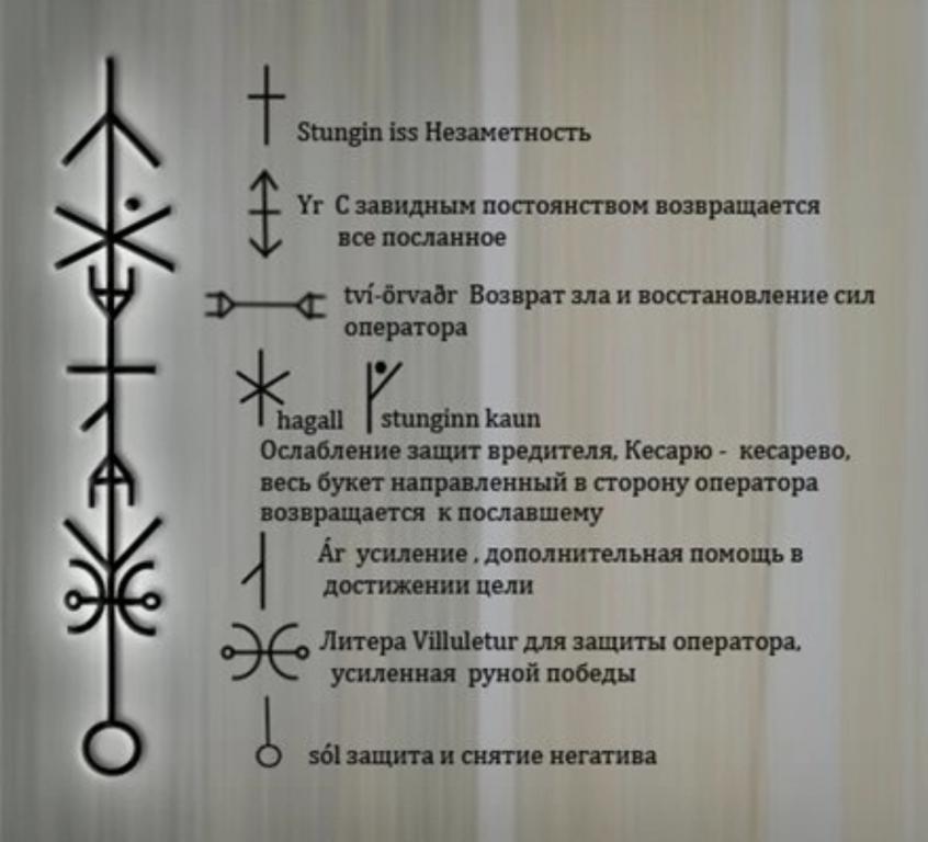 Став на возврат и отражение негатива. Состоит из рун исландского футарка (описание на рис. 2).