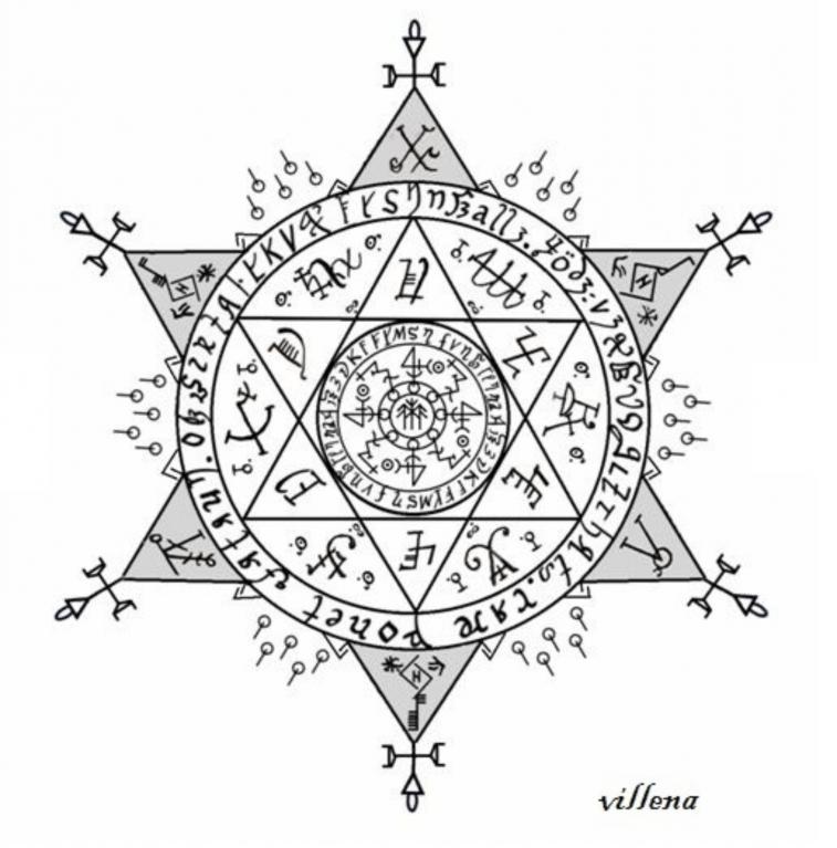 В качестве основной магической формы выбраны шестиугольник, как символ защиты, и окружность, как символ объединения, усиления действия всех магических знаков, расположенных внутри.