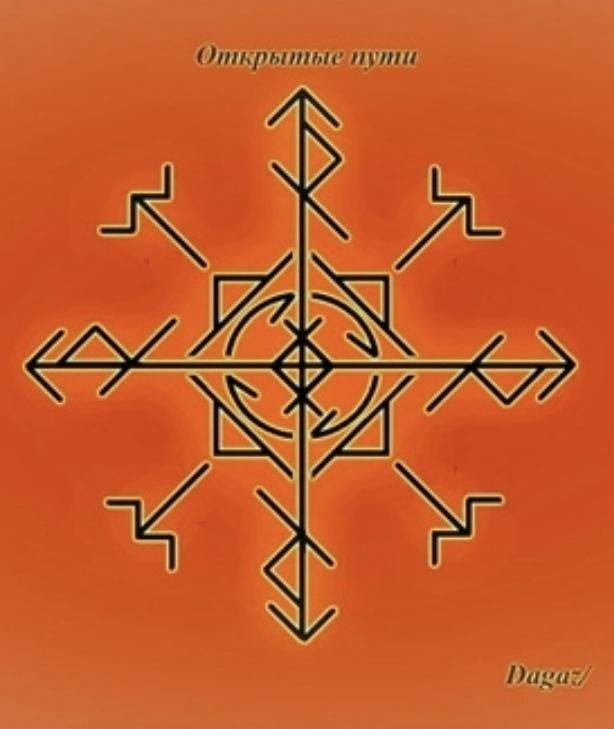 Руны в ставе: Эар, Тейваз, Лагуз, Турисаз. Наутиз. Райдо и Ингуз. Рисовать очень просто, начиная от центра по часовой стрелке и до окончания каждого луча. Заканчиваем все Ингузом.