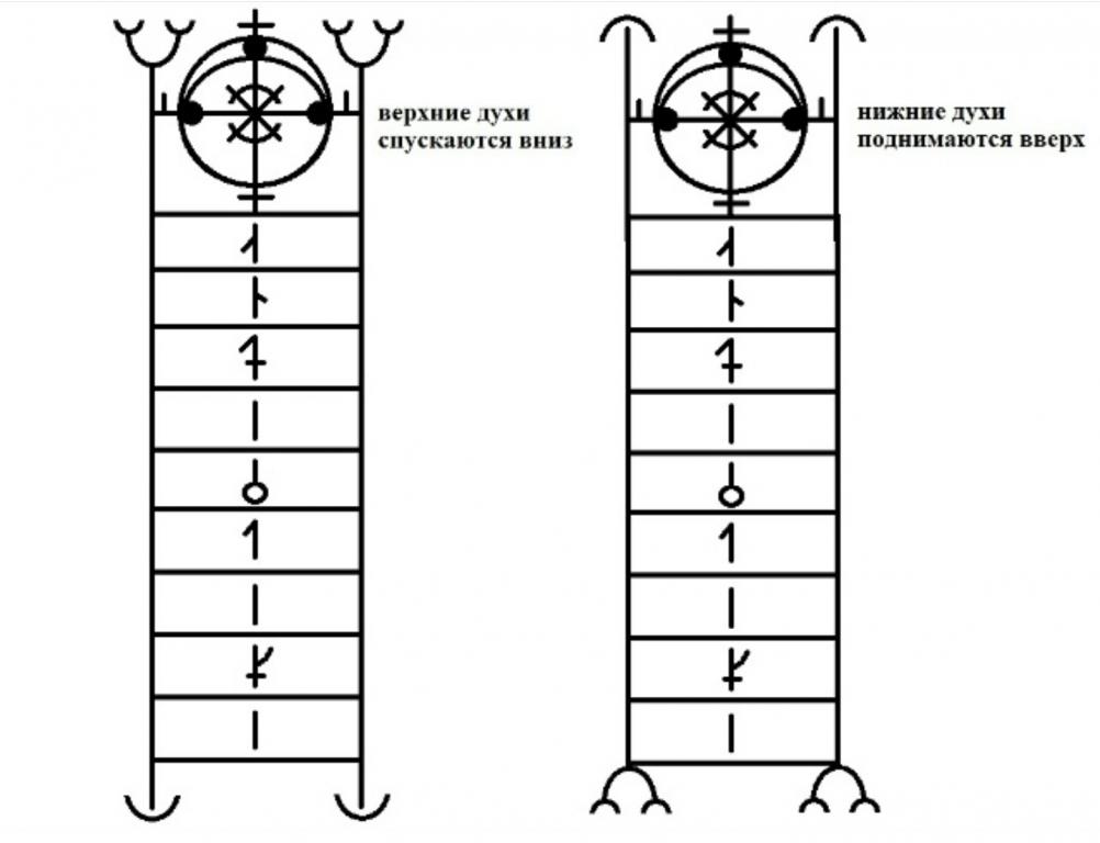 В вуду есть столб, по которому поднимаются-спускаются духи, в сибирском шаманизме - шаманы при посвящении залезают на березы и "спускают" предков в наш мир, чтобы помогали...и т.п.