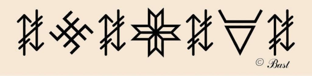 Став состоит из 3-х чиров: Сварога, Перуна, Велеса и рун: Сила, Опора и Треба.