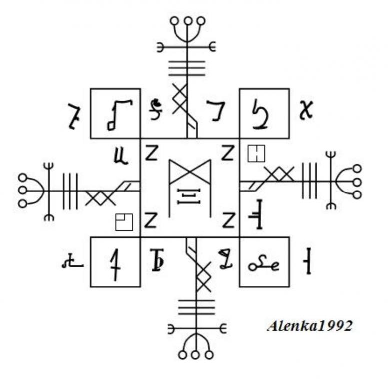 В этом ставе руны для защиты людей, связанных по крови или родственников,