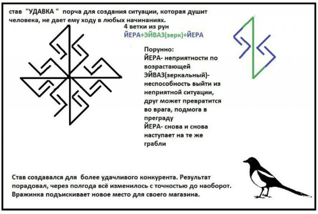 Вроде бы простой став, состоящий всего из 2 рун, но за счет множественных ЙЕРА создает удушающее положение. Нет просвета, нет выхода. Порвет одну проблему, а там другая, третья, не вырваться.