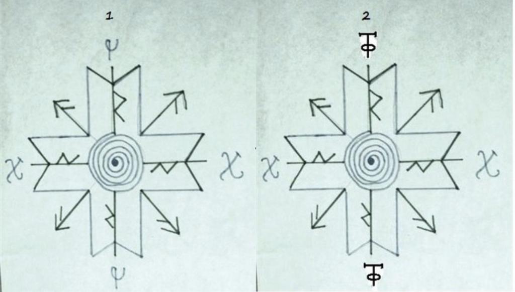 -Количество завитков у спирали не имеет никакого значения. Важно в какую сторону раскручивается спираль. Если закручиваем против часовой, это воздействие вовнутрь, по сути - чистка, здесь мы раскручиваем спираль по часовой, воздействуем на внешнее пространство, расширяем его. Спираль - это сила! Если в Компасе литера расширяет наше пространство, то здесь - спираль. Магические инструменты разные, а результат одинаковый!