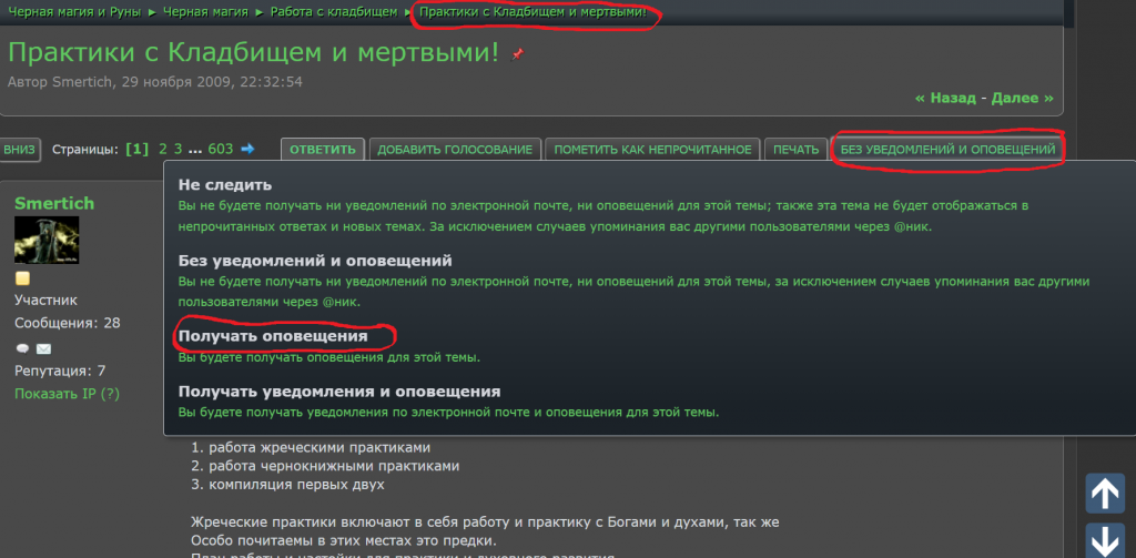 Заходите в нужный раздел. В данном случае раздел называется "Работа с кладбищем". Открываете интересующую вас тему, в данном случае название темы "Практики с кладбищем и мертвыми".