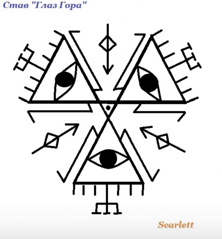 В составе руны Эйваз, Тейваз, Йера, Альгиз, глифы.