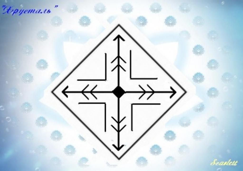 Оси - Тейваз, на них по 2 руны Ансуз - зеркальных и прямых. Между линиями - Кеназ. Все заключено в глиф "действие".