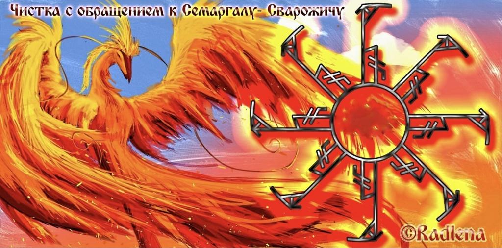 Чистка с обращением к Семаргалу-Сварожичу: ритуал с использованием рун (Крада, Сила, Треба, Уд, Есть, Опора) и чира Семаргала. Обряд включает зажжение свечи, чтение заговора и просьбу очистить тело и дух от злых духов, наваждений и болезней. Слава Семаргалу-Огнебожичу!