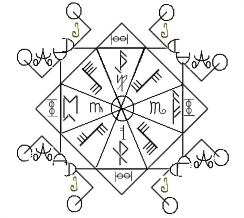 А далее добавляем руны Перто, которые ищут информацию в окружающем мире, на их концах Йотунский морок, чтобы спрятать меня от, того о ком ищу информацию.