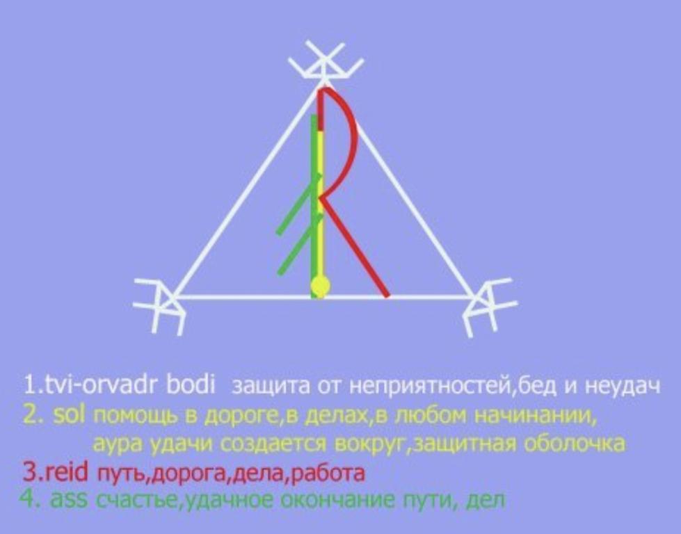 Может использоваться как оберег в дороге,машины,любого начинания,дела,работы