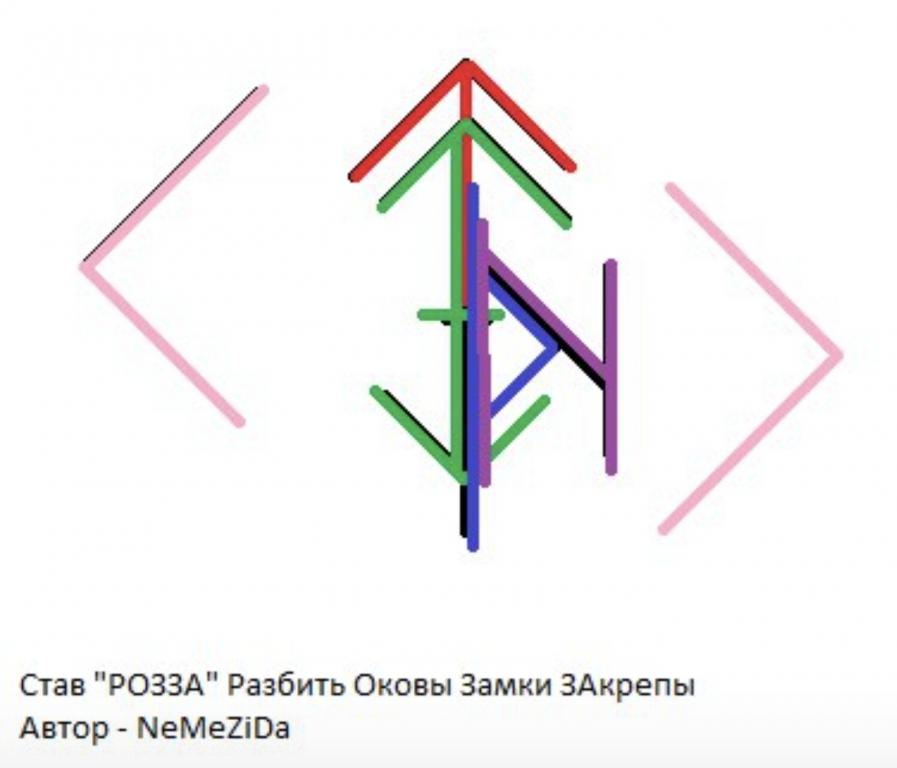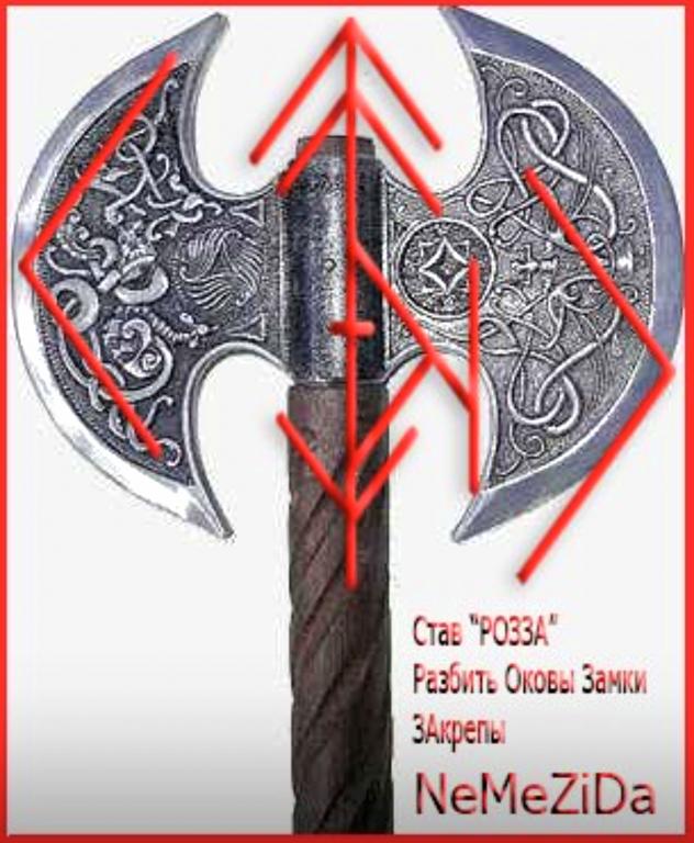 "Данный рунический став при поддержке Богов в кратчайшие сроки и с максимальным комфортом для оператора снимает, ломает и полностью разрушает, уничтожает безвозвратно во всех измерениях, направлениях, на всех уровнях и планах, любые оковы, замки, закрепы, закольцовки, мины- ловушки, энергозацепки, любую чуждую для оператора защиту на магическую работу, путы, кандалы, оковы, черные крадники, программы и подпрограммы - восстановители и программы и подпрограммы -активаторы негатива.
