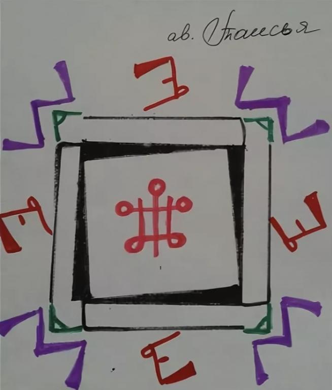 Все глифы по четыре шт. Внутри дамасский глиф, так я вижу благополучие в семье, в доме и вообще. И на человека и на вещь можно, что угодно. Меняем только середину. Все глифы рисуем только в прямом положении, поворачивая по часовой стрелке.
