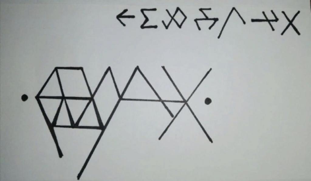 Отраженная-перевернутая: раб, бесправное существо, живая вещь. Наносится на ошейник раба.