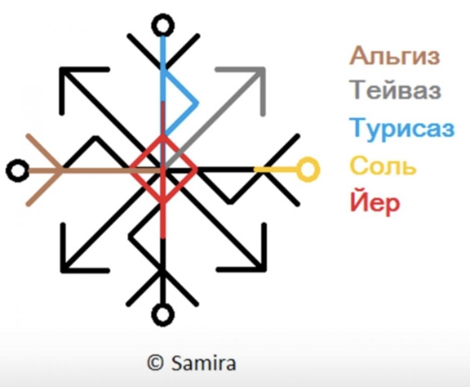 ➽ Альгиз – выявляет постороннее воздействие, задействуя покровительство ВС