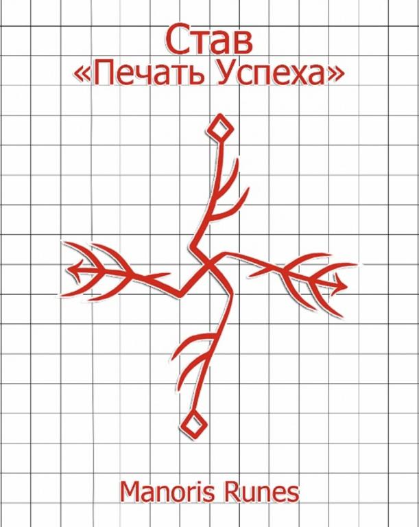 «Силой рун, Силой моих слов, данный рунический став «Печать успеха» высвечивает меня на фоне других людей, привлекает ко мне внимание, обеспечивает меня нужными связями, которые помогут мне в моём продвижении по карьерной службе, в творчестве (перечислить то, что нужно). Данный рунический став «Печать успеха» обеспечивает меня постоянным финансовым притоком, чтобы я не делал(а), это приносит мне прибыль. В любых моих начинаниях и делах меня ждёт удача и успех. Став защищает меня от непредвиденных, опасных ситуаций, наделяет меня силой и уверенностью в себе. Данный рунический став активируется огнём и работает до тех пор, пока носитель со ставом не будет мною уничтожен! Рунический став «Печать успеха» работает без вреда для моего здоровья и здоровья моих родных. Силой рун, Силой моих слов да будет так!"