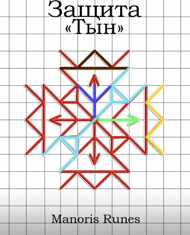 Руны входящие в состав става: Тви-ёрвадр боги, Альгиз, Турисаз, Тейваз, Соуло.