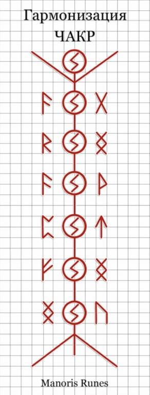 В каждой чакре вы рисуете руну Соуло и проговариваете её действие, затем дополнительные руны справа и слева и опять же, оговариваете их действие.