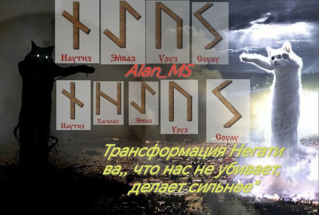 Значение: Принудительные обстоятельства/трудности (Наутиз) через процесс трансформации/преодоления (Эйваз) приводят к обретению новой силы и выносливости (Уруз) и, как следствие, к победе/успеху (Соулу).