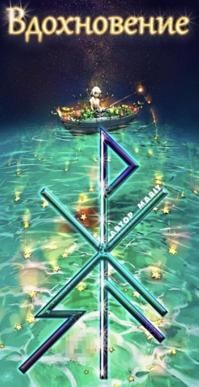 Гебо - помощь богов и усиление дара, альгиз поможет найти правильный путь и не сбиться с него, ансуз поможет необходимым знаниям придти к вам, феху - усиление потока, в котором вы работаете, либо войти в поток. Вуньо, соуло - процесс принесет удовольствие от вашего занятия, раскрытия способностей, как плодов вложенного труда. Можно использовать и во время магической работы. По диагностике.
