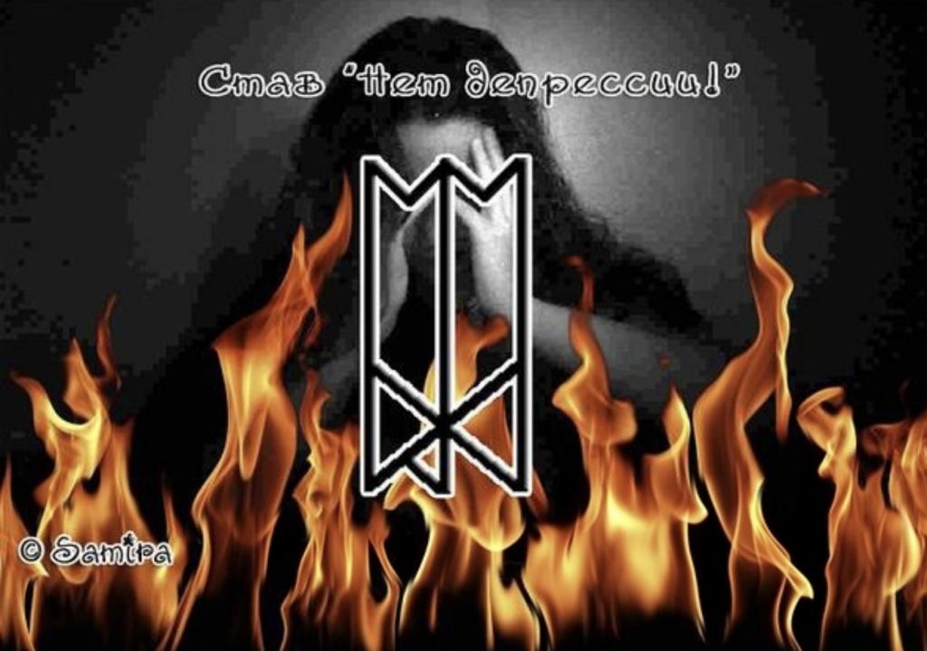 «Силой руны Квеорт выжигаю у (имя) депрессивное состояние и тоску. Все выжженное