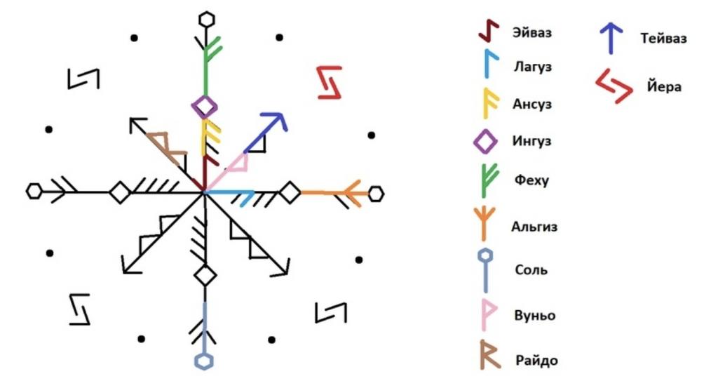 По факту, это не став, а печать, и она должна восприниматься целостно, а не как отдельные руны.