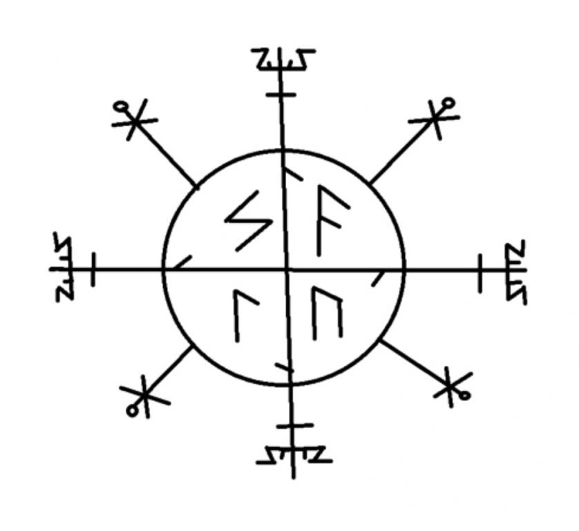 Эйваз - защита от магии, сглазов и в виде свастики ,Природный крест и формула SALU- на удачу,поскольку именно удача(Личная Сила) позволяет выйти "сухим из воды".
