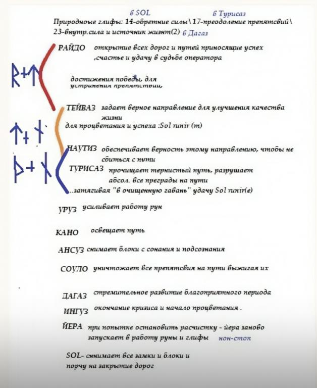 Турисаз — прочищает тернистый путь, разрушает абсолютно все преграды на пути, затягивая "в очищенную гавань" удачу Sol runir (e).