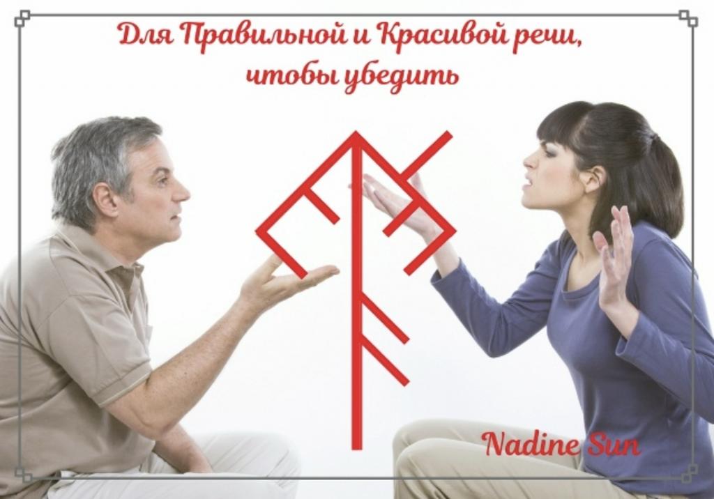 Данный Рунический Став, силой своих рун и под покровительством ВС делает так, чтобы я (имя) находил(а) и выбирал(а) нужные слова и правильный стиль общения, при котором моя речь становится яркой, убедительной, слова и мысли излагаются чётко, понятно и ясно для собеседника. И пусть моя речь будет аргументированной, обладает правильно выстроенной риторикой, и я смогу убедить собеседника в своей правоте, тем самым склонив принять мою точку зрения и одержать победу в любом диалоге, где это возможно.