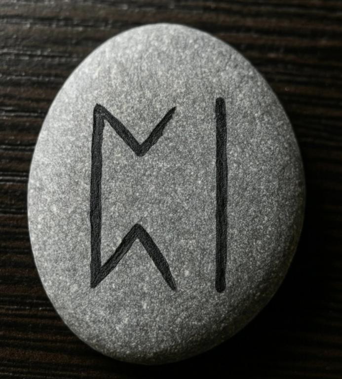 Возьмите гладкую гальку и нарисуйте на ней две руны: Перто и Иса.