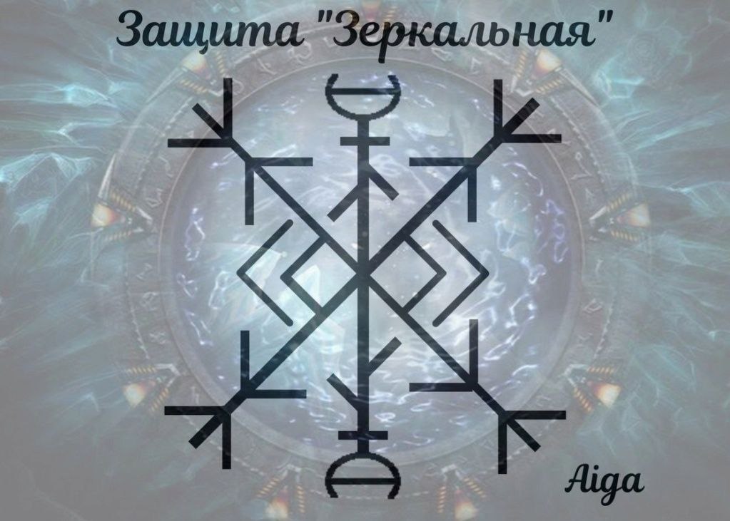 Данный рунический став, силой рун Альгиз, Исс, Твиервард боги, Тир, Ир, Йера, Лёгр и Гар, создаёт вокруг меня зеркальный щит-защиту, который отражает весь насланный негатив и негативные воздействия и посылы любой природы и характера обратно атакующему, и защищает меня на всех планах (астральный, ментальный, физический и т.д.) от всего оговоренного насланного негатива.