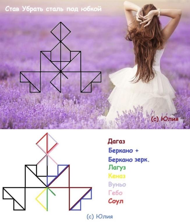 Дагаз (2) + беркана (зеркальная и прямая ) — изменить состояние от «стальные яйца» до женственности.