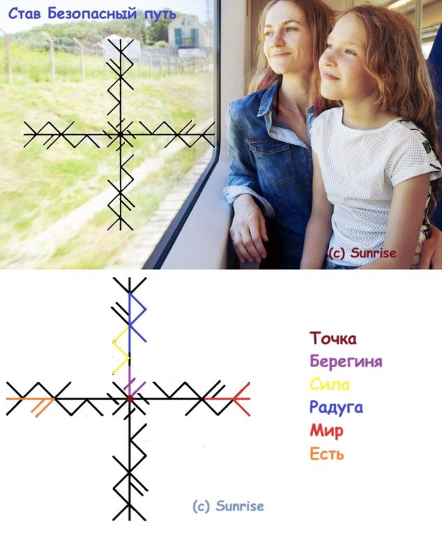 Силой данных рунных знаков мой ребёнок под надёжной защитой и наполнен энергией для безопасного пути из пункта А в пункт Б (указать место назначения) при помощи и поддержки ВС Так есть и так будет.