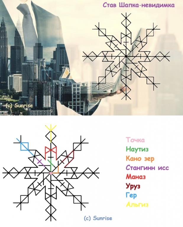 Силой данных рунных знаков моя компания принудительно утрачивает внешнюю яркость и выделяемость на фоне остальных компаний, становится незаметной и воспринимается как обычный, рядовой бизнес, не представляющий интереса для сотрудников и организаций государственных структур (можно оговорить конкретно каких). Став работает постоянно и непрерывно до момента снятия, при помощи и поддержке батюшки Велеса, без вреда для меня и моей компании.