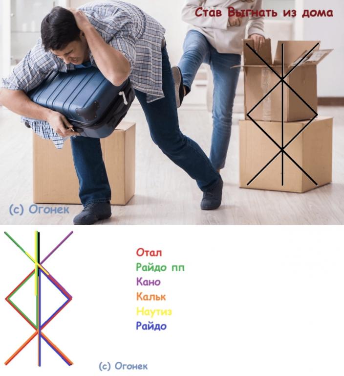 Наутиз + Райдо — принуждаю бежать из этого дома, квартиры, иного места.