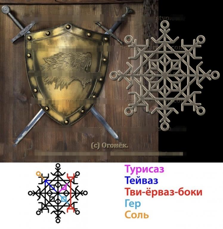 Турисаз + Тейваз — отсекают и отталкивают летящий негатив;