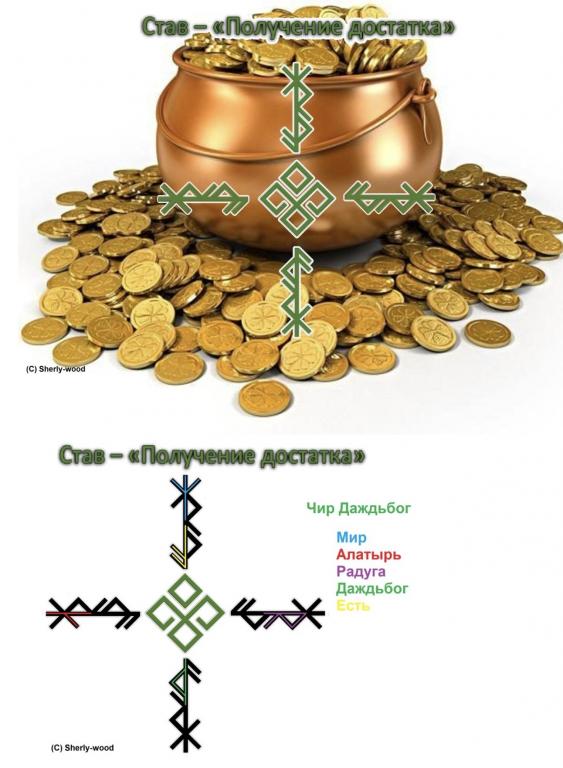 Под защитой и покровительством Даждьбога с помощью ДРС в самое ближайшее время мне открывается путь к желаемому достатку. ДРС работает без вреда для меня, моей семьи, без вреда для благосостояния моей семьи, а также без вреда для моей магической работы. ДРС начинает свою работу с момента активации, активируется огнем и работает до тех пор пока я не отпущу руны с благодарностью путем сожжения носителя. Силой данных рун и моей волей — ДБТ!