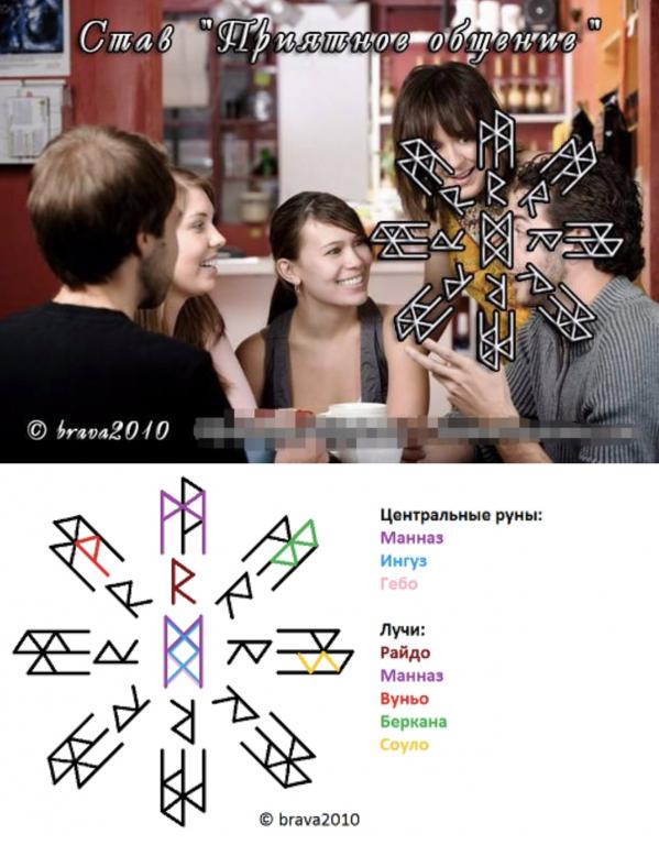 Сила данного рунического става притягивает ко мне людей позитивных, приносящих радость, с богатым внутренним миром, уверенных в себе и удачливых, с которыми мы в самом скором времени находим взаимно пути и точки соприкосновения , у меня зарождаются с ними крепкие дружеские отношения.