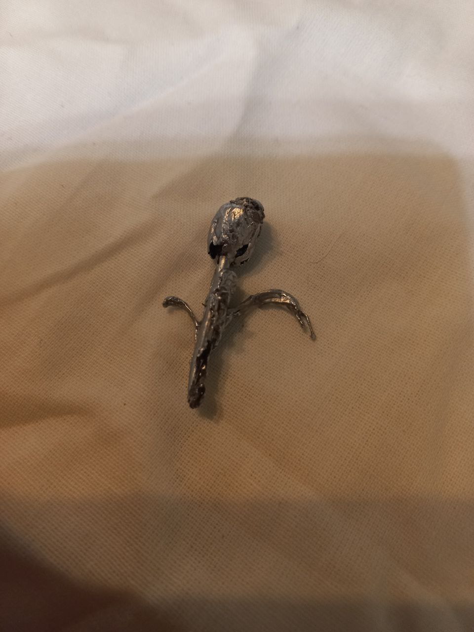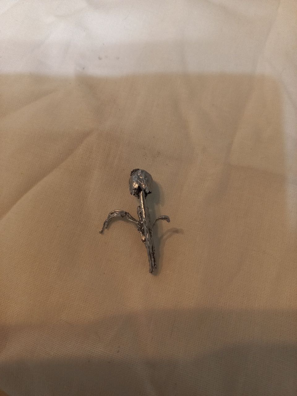 Отливала свинцом порчу с мороком и замками и на 3й отливке такой красивый цветок вылился. Свинец сложно фотографировать, но это прям четкий цветок. У меня лично видется как головка мака сушеного или чертополох, или розы бутон, не знаю...