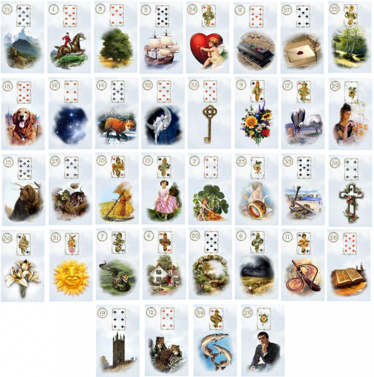 Гора+Всадник+Дерево+Корабль+Сердце+Гроб+Письмо+Развилка